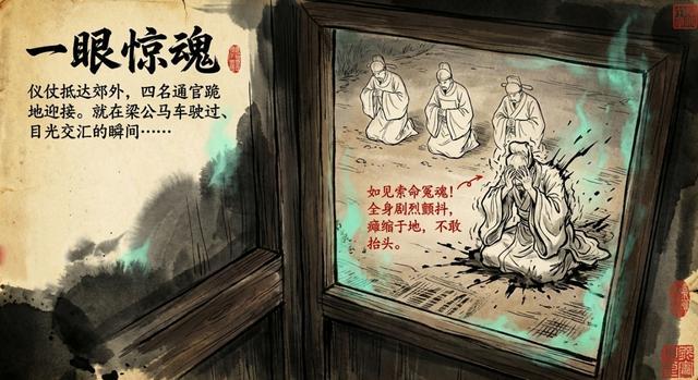 其中一名官员在抬头望见梁公容貌的一瞬间,像是见到了索命的冤魂,吓得全身剧烈颤抖,烂泥一样瘫缩在地上,头都不敢抬。