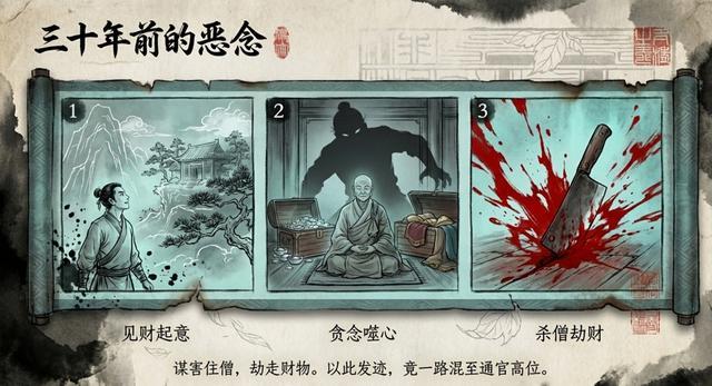 “我今天死在这里,确实是命啊。三十多年前,我年轻气盛,路过一座山寺,见那里的住僧积蓄颇丰,我便动了恶念,设计杀害了僧人并抢走了他的财物。
