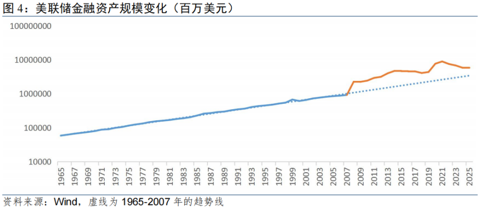随着美联储其他负债(如M0等)的不断增长,超额准备金自然会被消耗,美联储则需要持续地通过购买证券特别是国债来补充准备金供给,以维持其供需平衡。