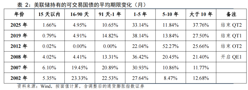 量化宽松和扭曲操作对持有债券的期限结构带来难以逆转的破坏,RMP集中购买超短期国库券,对于降低美联储整体持有美债的平均期限有所帮助。